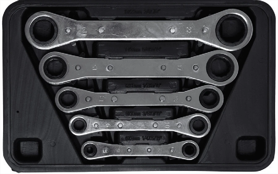 Ratschen-Ringschlüssel-Satz, gerade, umschaltbar | SW 6 x 8 – 19 x 22 mm | 5-tlg.