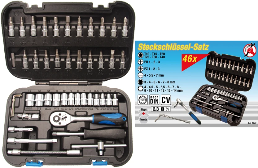 Steckschlüssel-Satz | Antrieb 6,3 mm (1/4″) | 46-tlg.