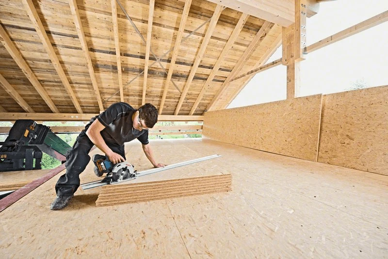 Akku-Kreissäge GKS 18V-57 G. Kraftvoller Helfer für schnelle und akkurate Schnitte. Leistung – Schneller Sägefortschritt und lange Laufzeit dank leistungsstarkem Motor und 5,0-Ah-Akkus. Flexibilität und Präzision – Der Einsatz der Führungsschiene ermöglicht schnelle und präzise Arbeitsergebnisse. Jeder wie er mag – Die Handkreissäge jetzt auch mit Sägeblatt auf der rechten Seite. Robustes Design – entwickelt für jede Art von Anwendungen auf der Baustelle, selbst auf dem Dach und dem Gerüst. Fußplatte zusätzlich kompatibel mit weiteren gängigen Systemen von Führungsschienen. L-BOXX 238 (1 600 A00 1RS), L-BOXX-Einlage, Kreissägeblatt Optiline Wood 165 x 1,7/1,2 x 20 mm (2 608 642 602), Absaugadapter, Innensechskant, Parallelanschlag