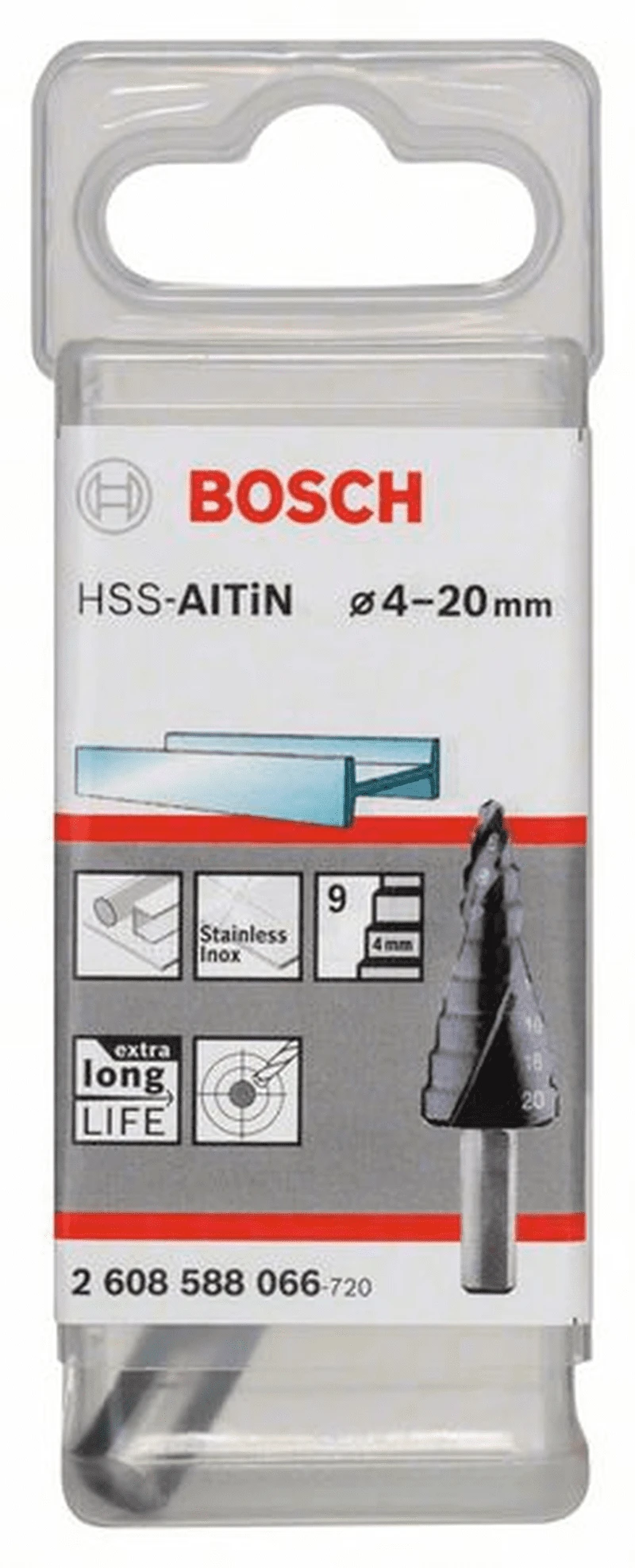 BOSCH Professional Stufenbohrer HSS-AlTiN, 4 – 20 mm, 6 mm, 50 mm, 9 Stufen 2608588066