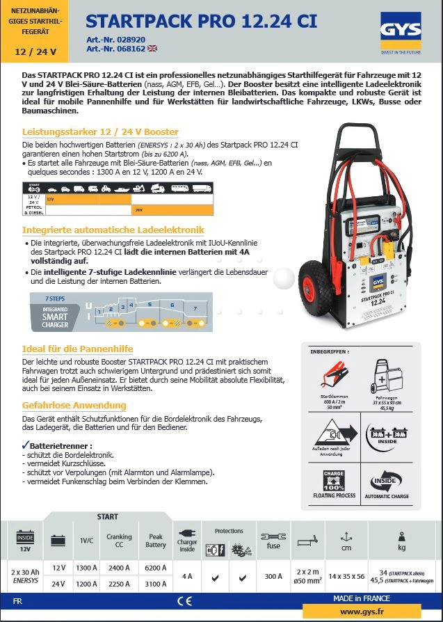 GYS STARTPACK PRO 12.24 CI netzunabhäniges Starthilfegerät 12 und 24V