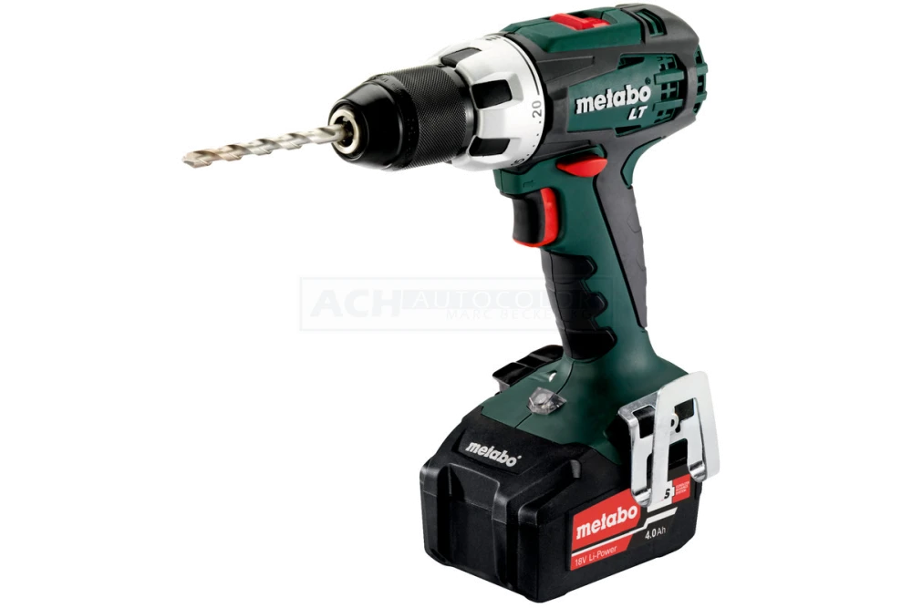 Schnellspannbohrfutter, Gürtelhaken und Bitdepot, 2 Li-Power Akkupacks (18 V/4,0 Ah), Ladegerät ASC 55 „AIR COOLED“, Kunststoffkoffer