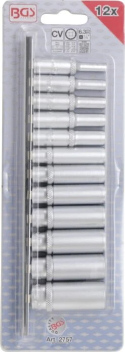 BGS Steckschlüssel-Einsatz-Satz Zwölfkant, Tief | 6,3 Mm (1/4″) | Zollgrößen | 12-tlg. – 2757