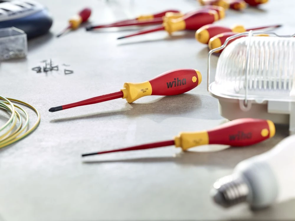Beim händischen Verschrauben werden auf Dauer die Handgelenke und Muskeln stark belastet. Abhilfe verschafft der besonders ergonomisch geformte SoftFinish® Schraubendreher, der für eine optimale Übertragung der Handkraft sorgt. Mit den langen, schlanken Griffgrößen können kleine Schrauben sicher und schnell eingedreht werden. Für das Eindrehen großer Schrauben gibt es großvolumige Griffgrößen, mit denen höhere Drehmomente aufgebracht werden können. Außerdem sind die verschiedenen Griffgrößen an die stets gleich große Hand von schraubenden Profis angepasst. Der Abrollschutz und das am Griffende aufgedruckte Schraubensymbol sorgen für effizientes Arbeiten. Bei der speziell für elektrische Anwendungen entwickelten Wiha slimTECHNOLOGY wurde die Schutzlisolation in die Klinge intergriert, um bis zu 33% schlankere Klingen zu ermöglichen. So können auch tiefliegende Schraub- und Federelemente mühelos erreicht werden. Die isolierten Schraubendreher werden gemäß der internationalen Norm IEC 60900 einer Stückprüfung unterzogen und ermöglichen ein sicheres Arbeiten im Bereich von spannungsführenden Teilen bis 1.000 V AC.